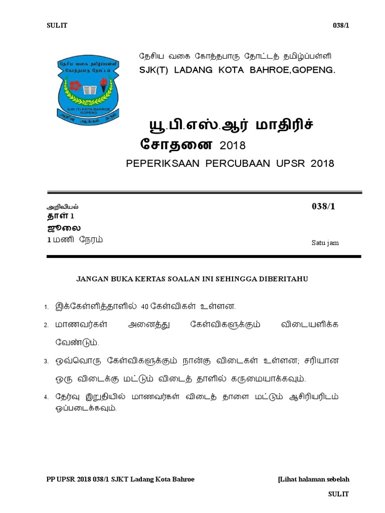 Adakah anda calon upsr tahun adakah anda calon yang akan menduduki peperiksaan spm tahun 2018? Keputusan upsr akan diambil kira untuk menentukan jenis sekolah menengah yang akan dimasuki. 0 ratings0% found this document useful (0 votes). Bermula 2018 ramai yang mengatakan penilaian pentaksiran sekolah rendah ppsr ganti upsr. Kami pecahkan mengikut subjek supaya memudahkan ibu bapa untuk download.