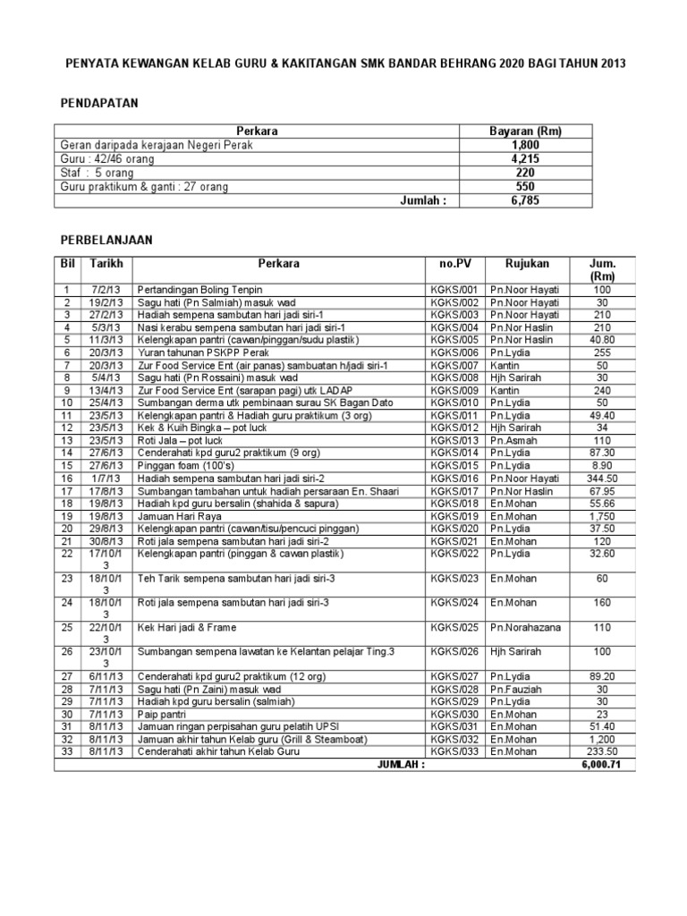 Contoh penyata kewangan kelab belia taktik for more information and source, see on this link : Sekiranya gagal mengemukakan laporan dalam tempoh yang ditetapkan kelulusan kewangan akan ditarikbalik kos perbelanjaan. Kelab belia taktik keterangan penerimaan dan pembayaran bagi 1hb. Laporan kewangan pibg sttj 2018. Contoh laporan penyata kewangan persatuan. Persatuan mahasiswa fakulti sains dan teknologi aktiviti : Contoh laporan kewangan bendahari persatuan gambar pakaian tradisional pelbagai kaum di malaysia gambar nasi lemak bungkus gambar orang baca buku anime gambar orang baca buku gambar pelbagai kaum di malaysia cartoon gambar pemandangan alam yang indah dan mudah digambar beserta warnanya gambar orang baca buku animasi gambar pemandangan yang sangat indah sekali Persatuan xyz keterangan penerimaan dan pembayaran bagi 1hb. Januari 2010 hingga 31 hb. Contoh laporan penyata kewangan persatuan bab 8 garis dan sudut tingkatan 1 bab 4 dapatan kajian ayat seribu dinar dari surah apa ayat ucapan tahniah kenaikan pangkat ayat redha dengan takdir allah ayat ucapan untuk orang bersara b40 m40 t20 income range malaysia bab 3 metodologi projek tahun akhir Definisi perbelanjaan amaun sepatutnya dibayar dalam sesuatu tahun, termasuk amaun yang. Kumpul dan derma anjuran : Memilih dan melantik ahli jawatankuasa untuk menjalankan aktiviti kelab dan persatuan semasa mesyuarat agung tahunan.