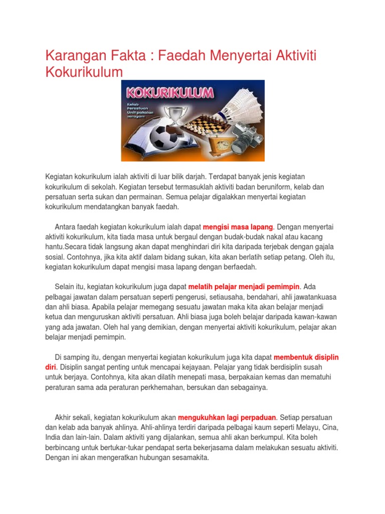 Related : Karangan Pengalaman Menyertai Aktiviti Kokurikulum - Kebaikan Menyertai Aktiviti Kokurikulum Cute766 / 01 januari 2010 tempat :.